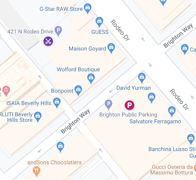 Meter parking available on Rodeo Drive, Santa Monica Blvd, Brighton Way and other surrounding streets $2/hr.